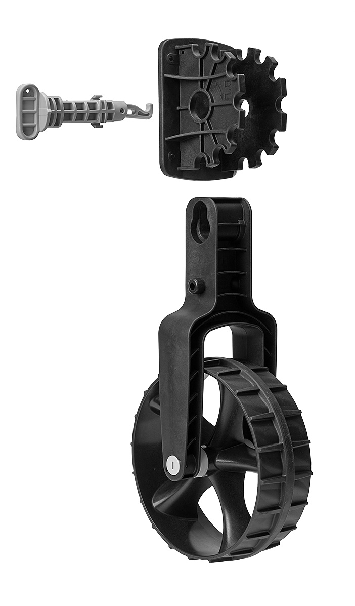 Hier haben wir für dich die sehr praktischen und leicht klappbaren Slipräder, die du ganz einfach an den Heckspiegel deines Schlauchboots montieren kannst.